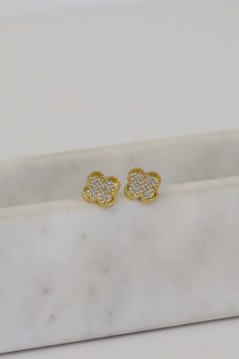 Nina Gold Rhinestone Quatrefoil Stud Earrings